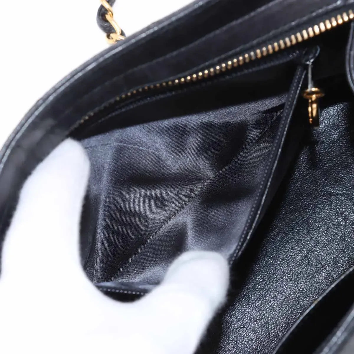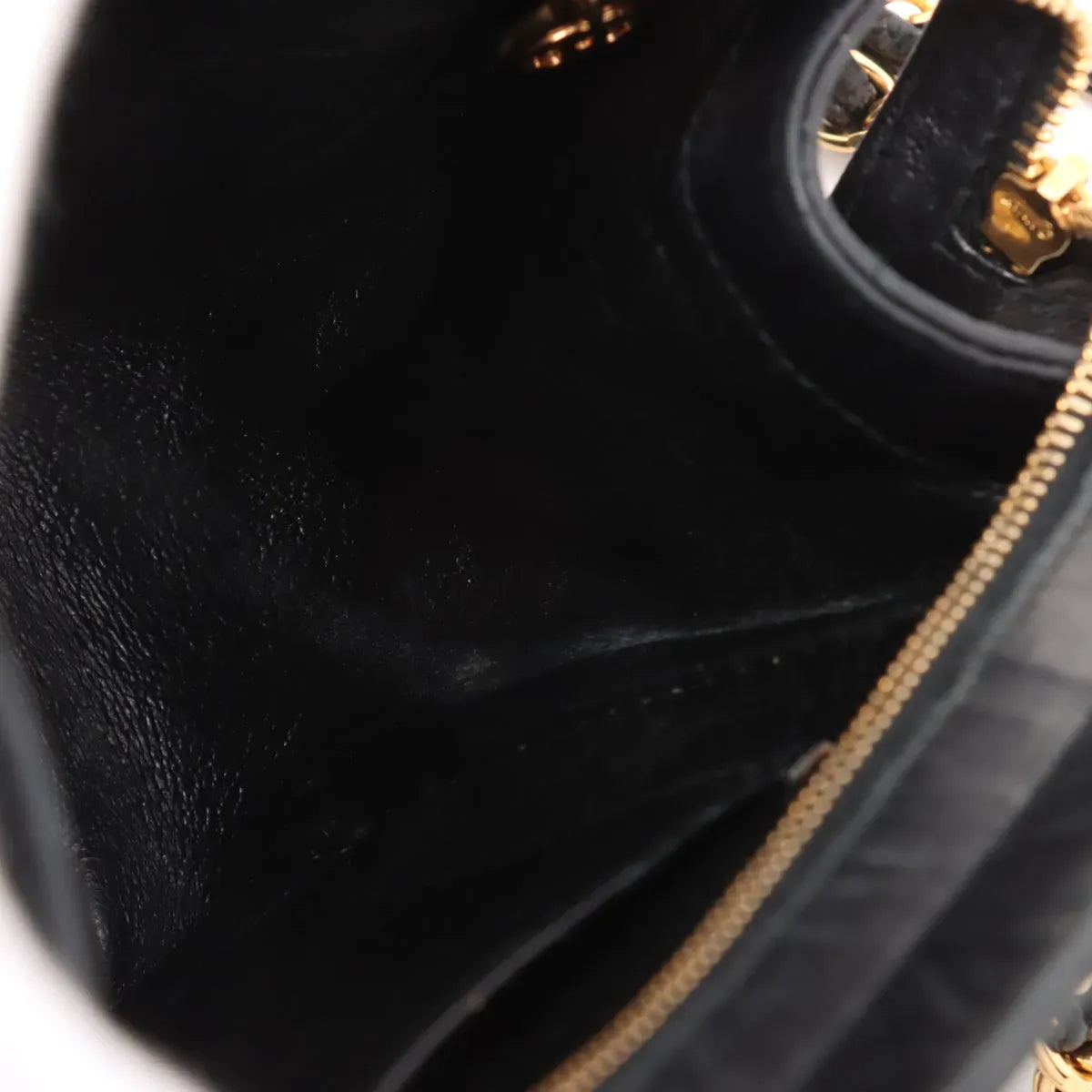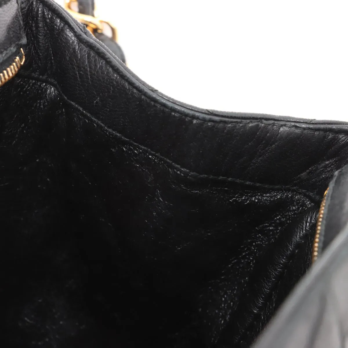Gold-tone hardware bright with minor hairline marks only