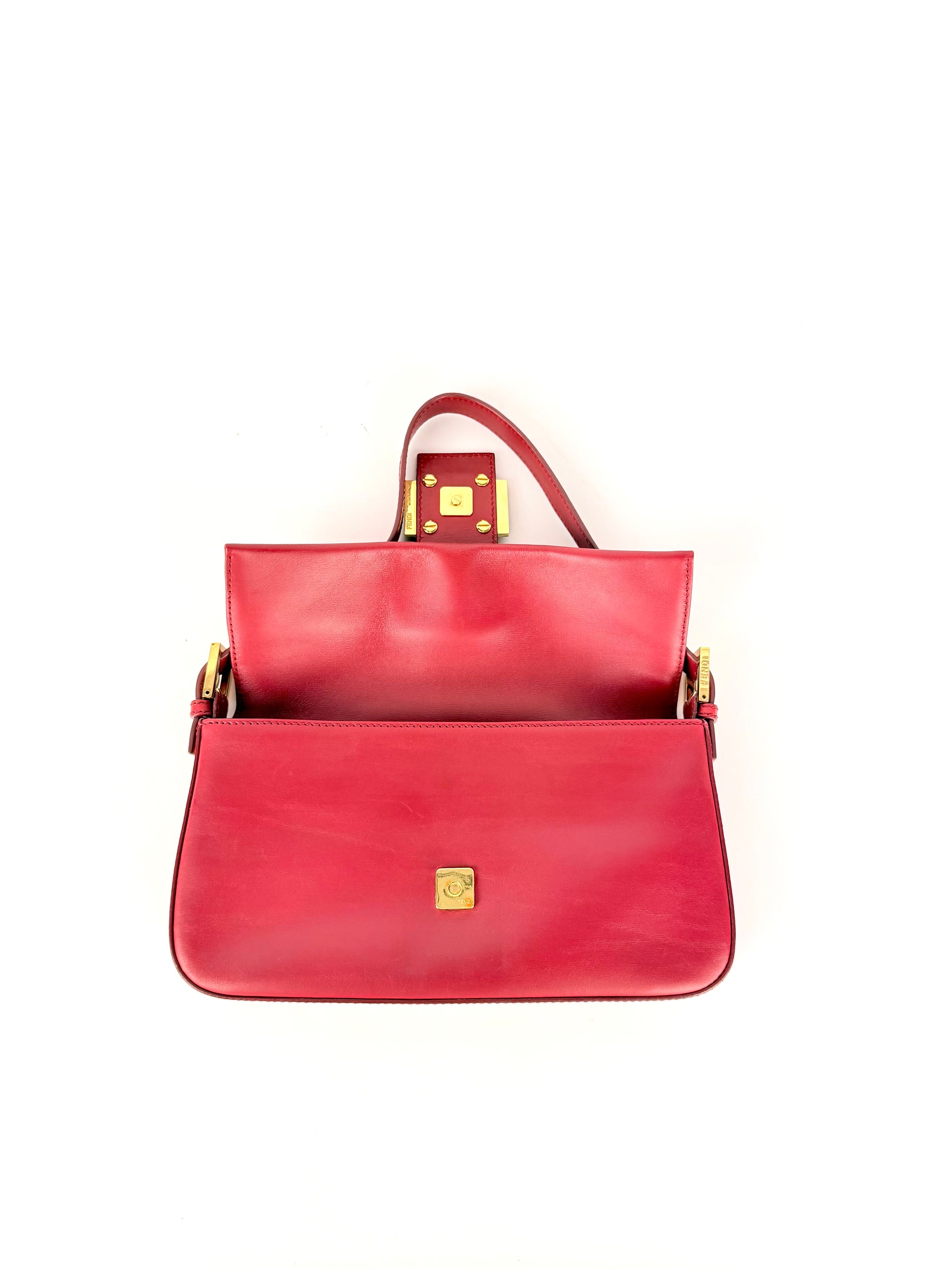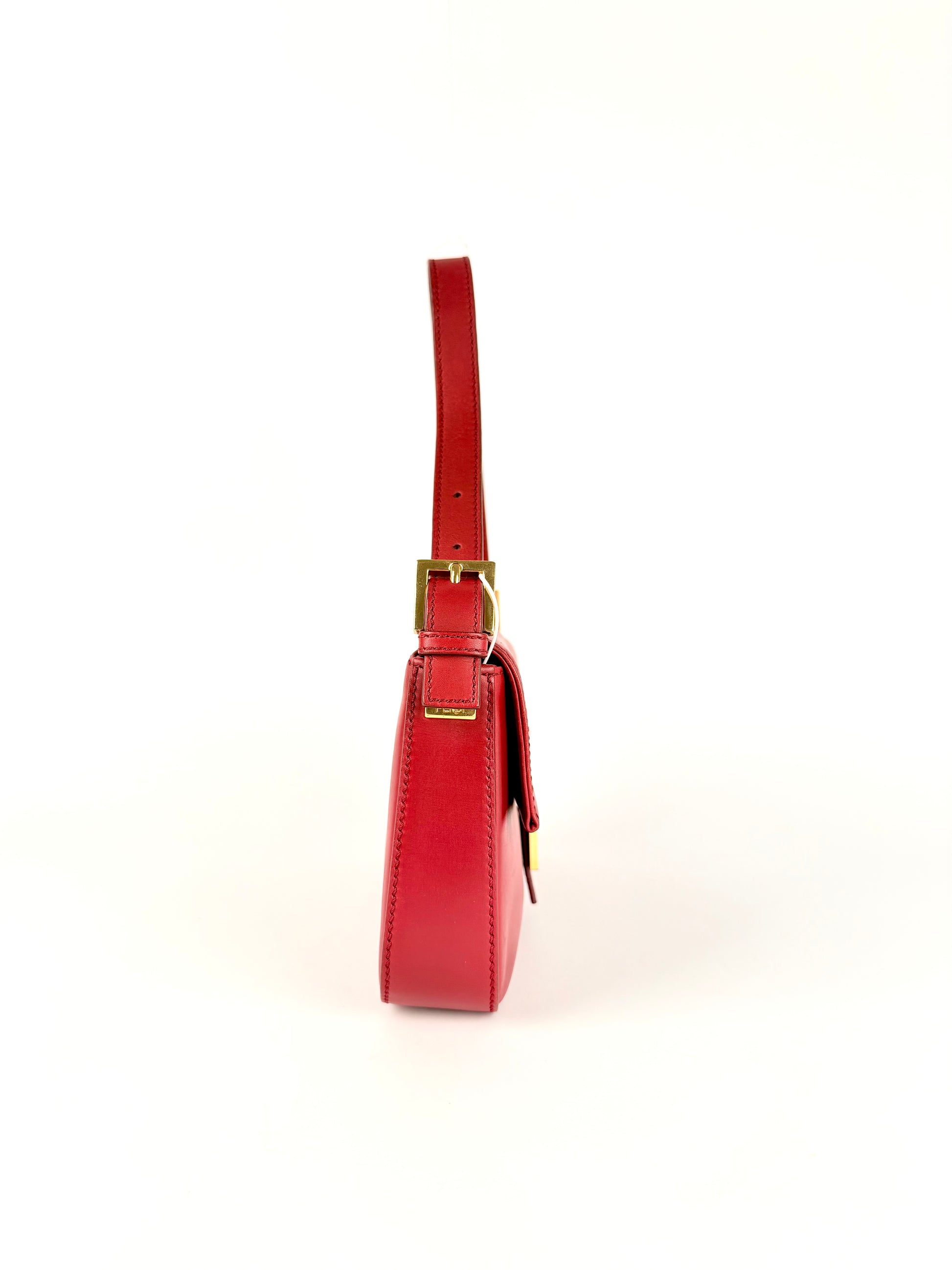 Fendi Baguette – Red Leather with Gold FF Buckle