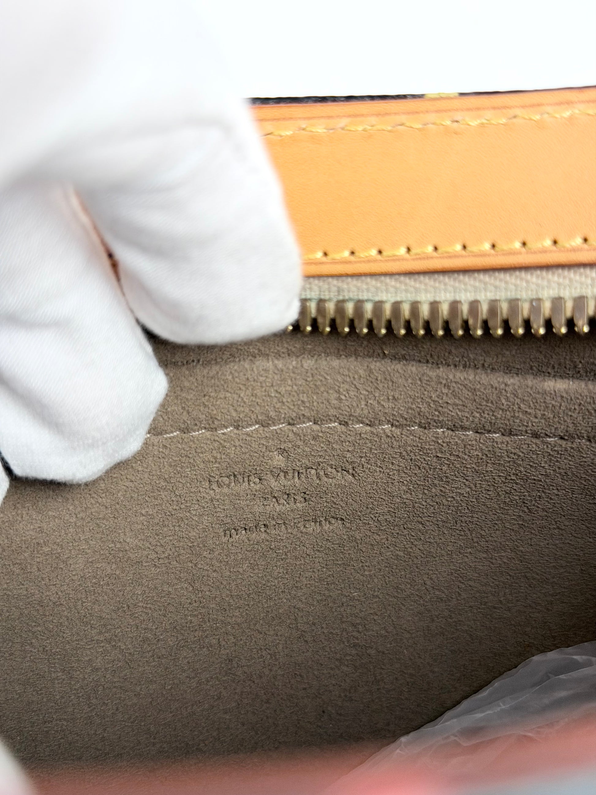 - Vachetta leather in excellent condition with very light patina only