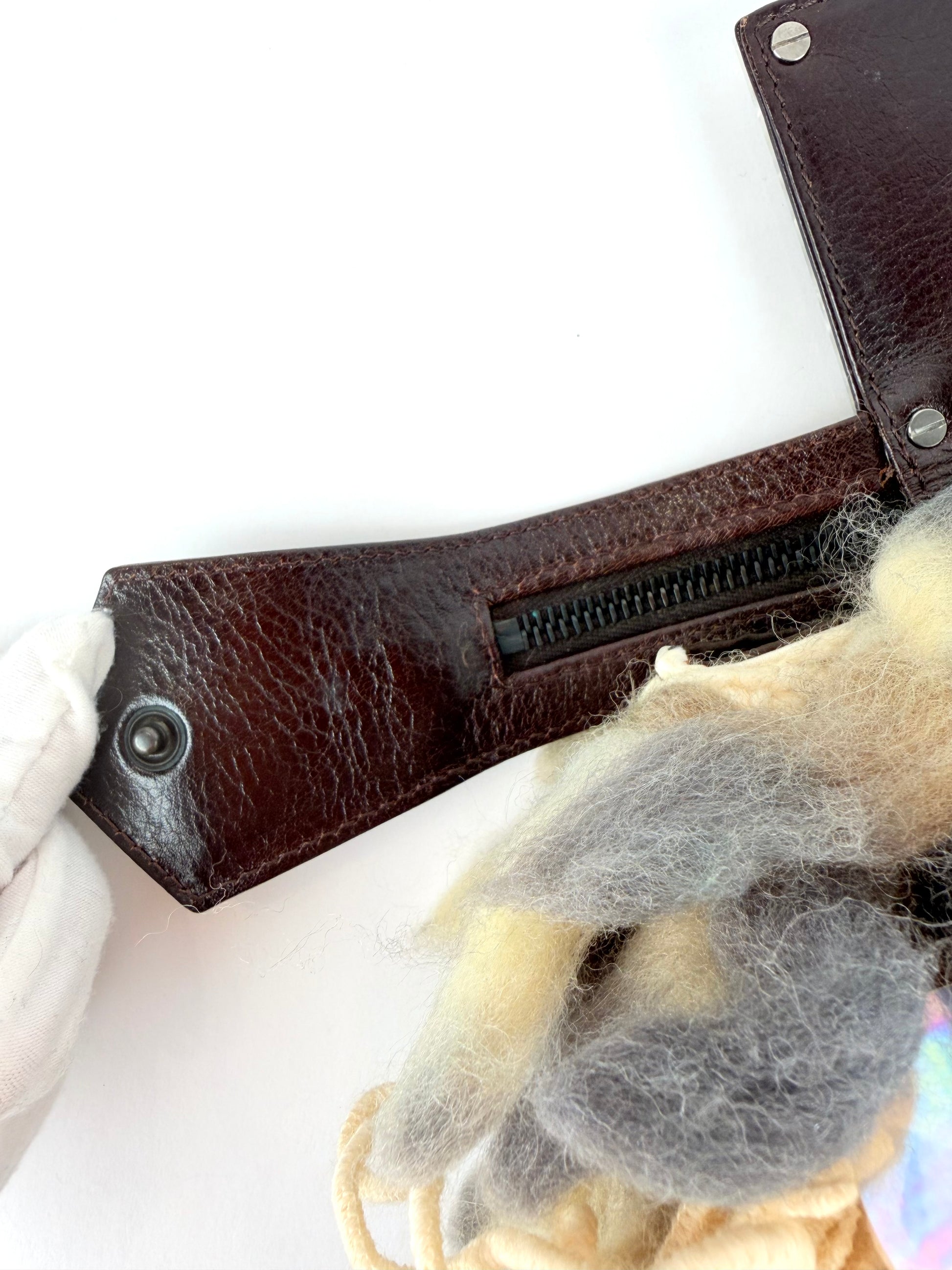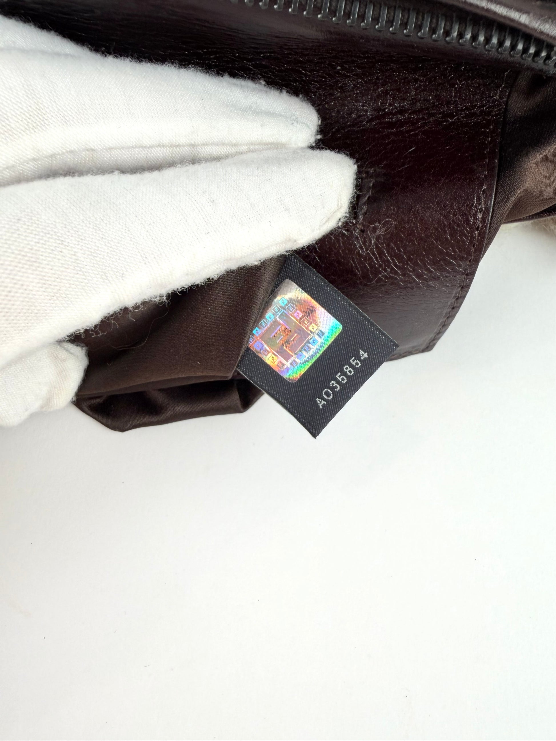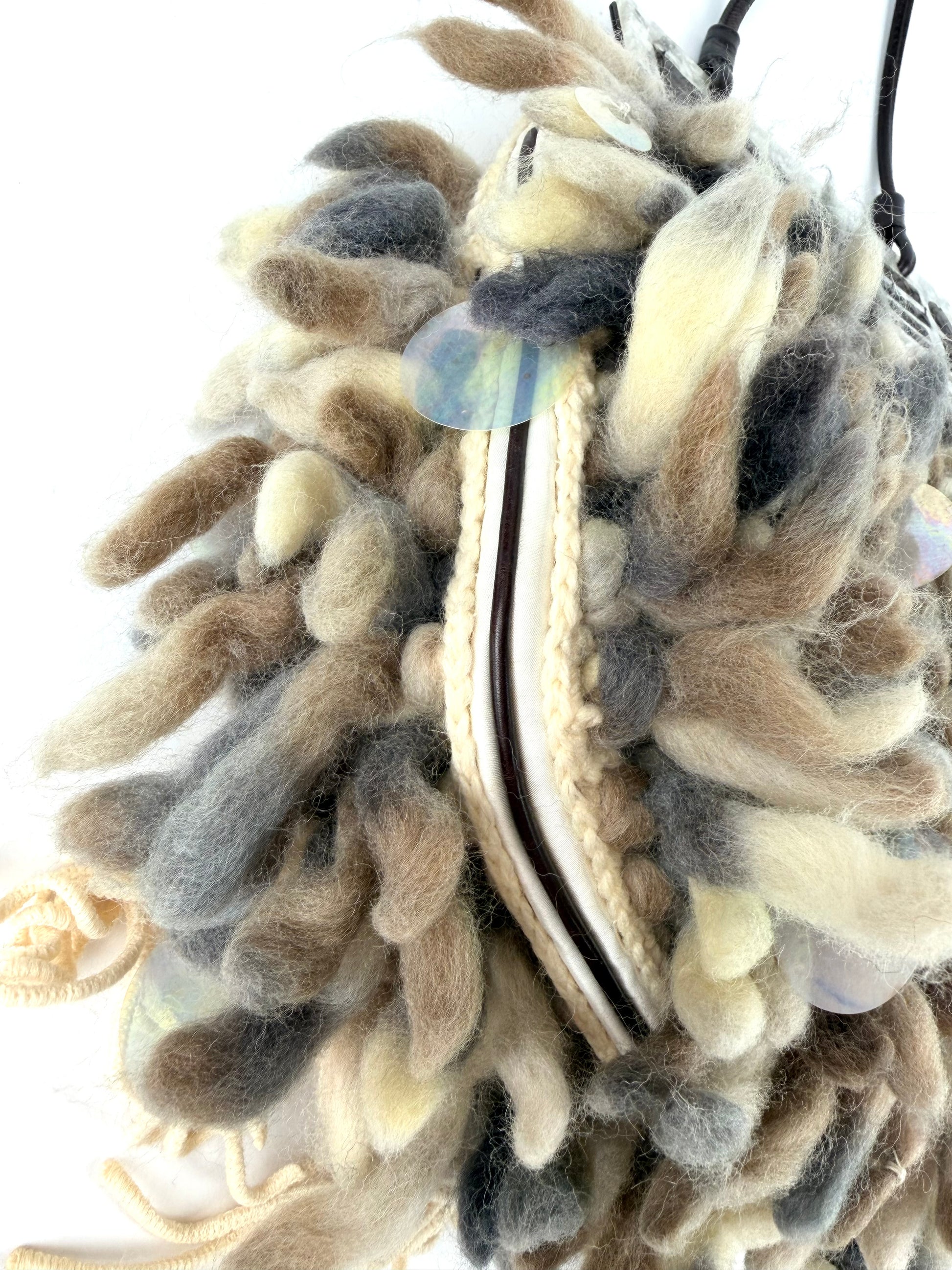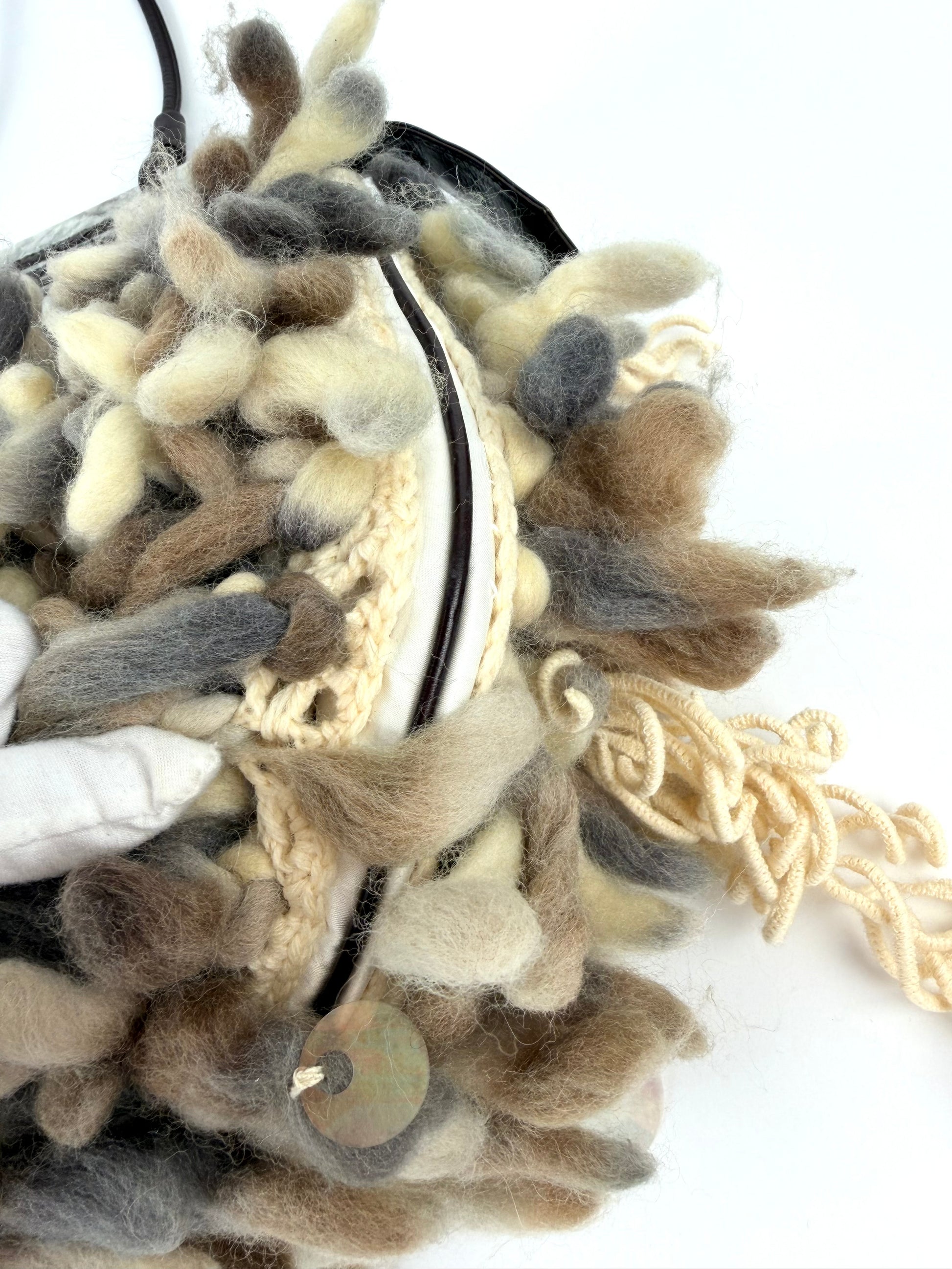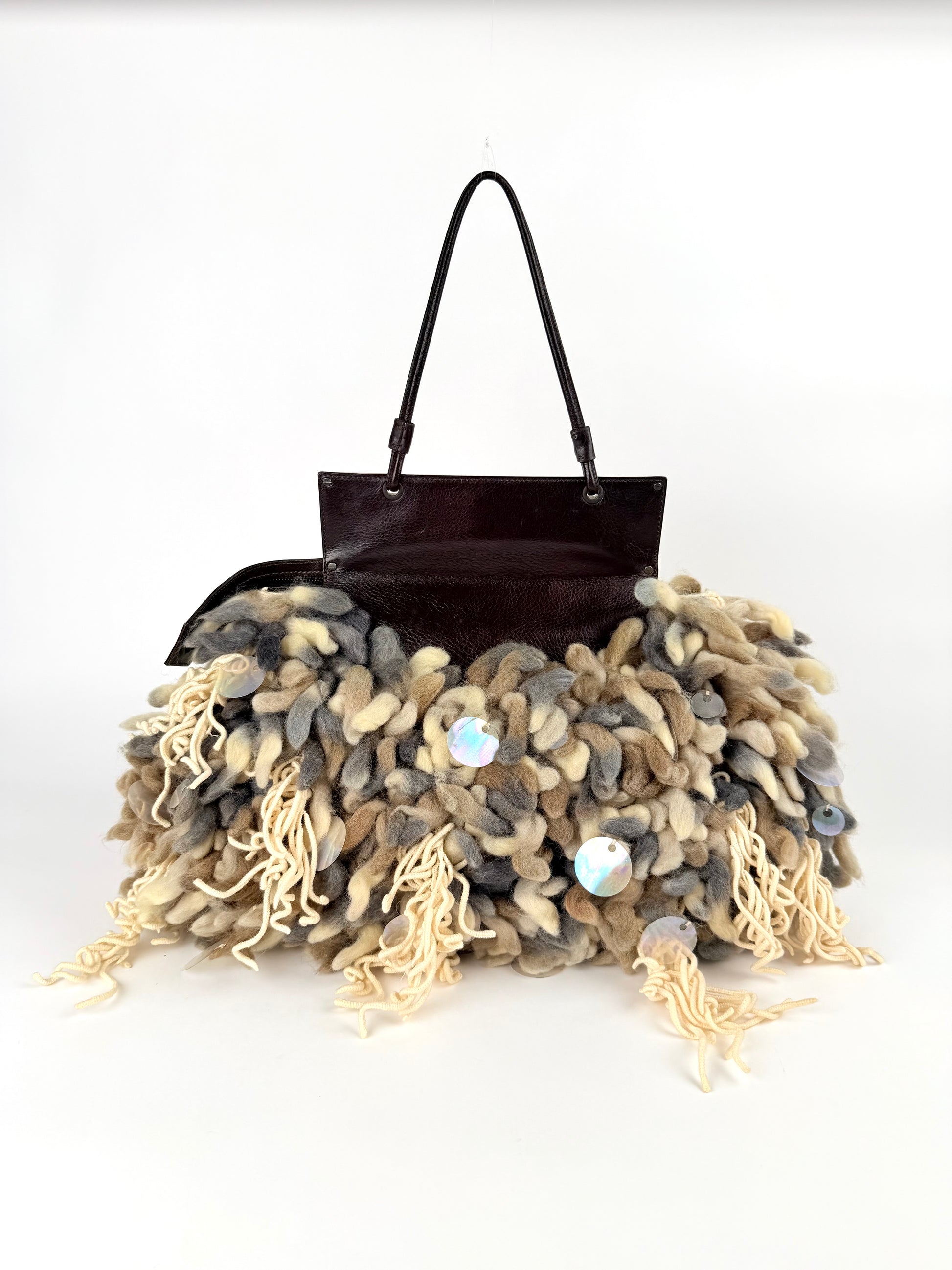 Fendi Fur Knit Acrylic Logo Handle Handbag Brown Multi